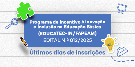 O Governo do Amazonas, por meio da Fundação de Amparo à Pesquisa do Estado do Amazonas (Fapeam), recebe, até 17h do dia 4 de dezembro, propostas para o Programa de Incentivo à Inovação e Inclusão na Educação Básica – Educatec-IN/Fapeam, edital nº 012/2025.